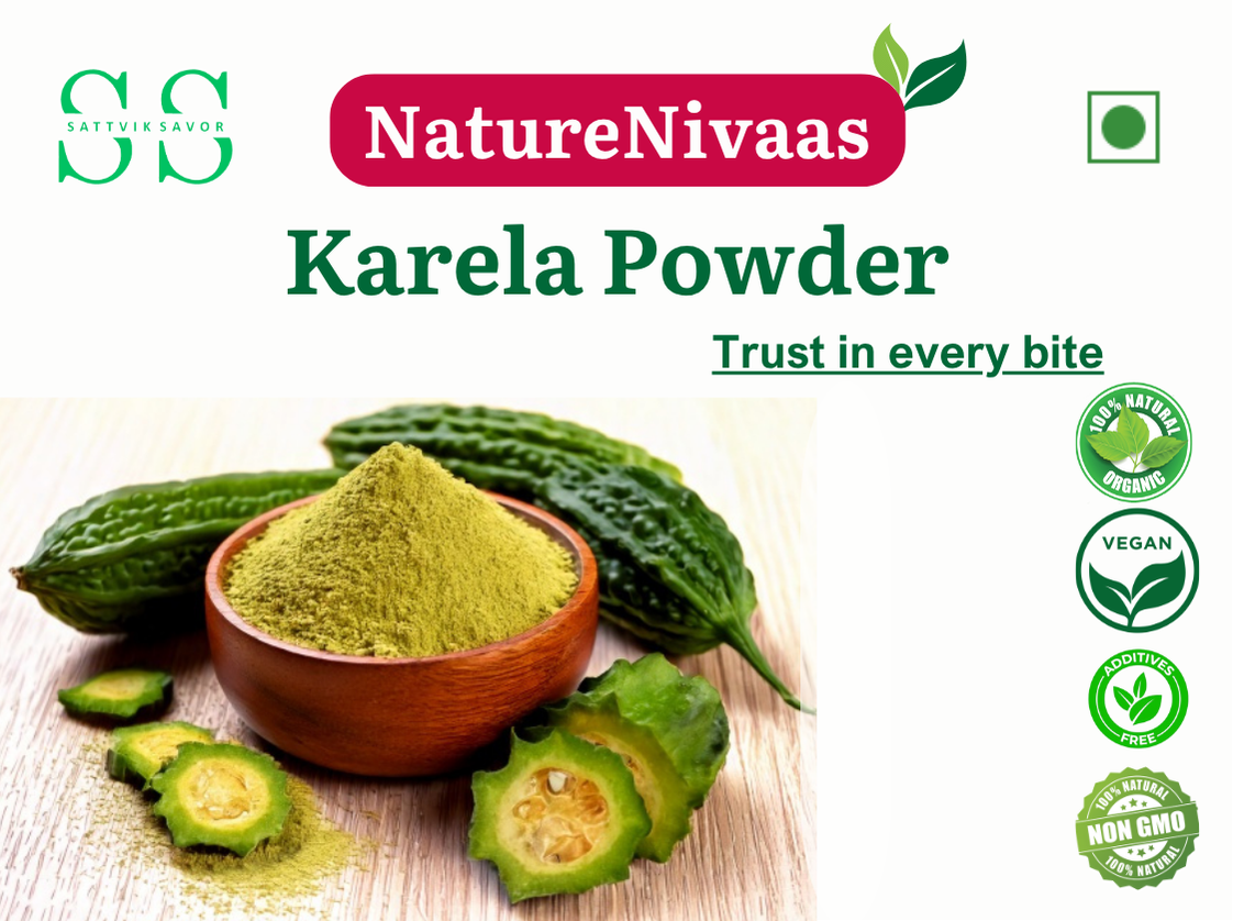 Karela Powder is made from the dried fruit of bitter gourd (Momordica charantia), a nutrient-rich vegetable known for its medicinal value in Ayurveda and traditional wellness systems. Karela is especially valued for its role in blood sugar management, liver cleansing, and digestive support. Our Karela Powder is 100% pure, finely milled, and chemical-free, ideal for daily consumption as part of a balanced, healthy lifestyle.