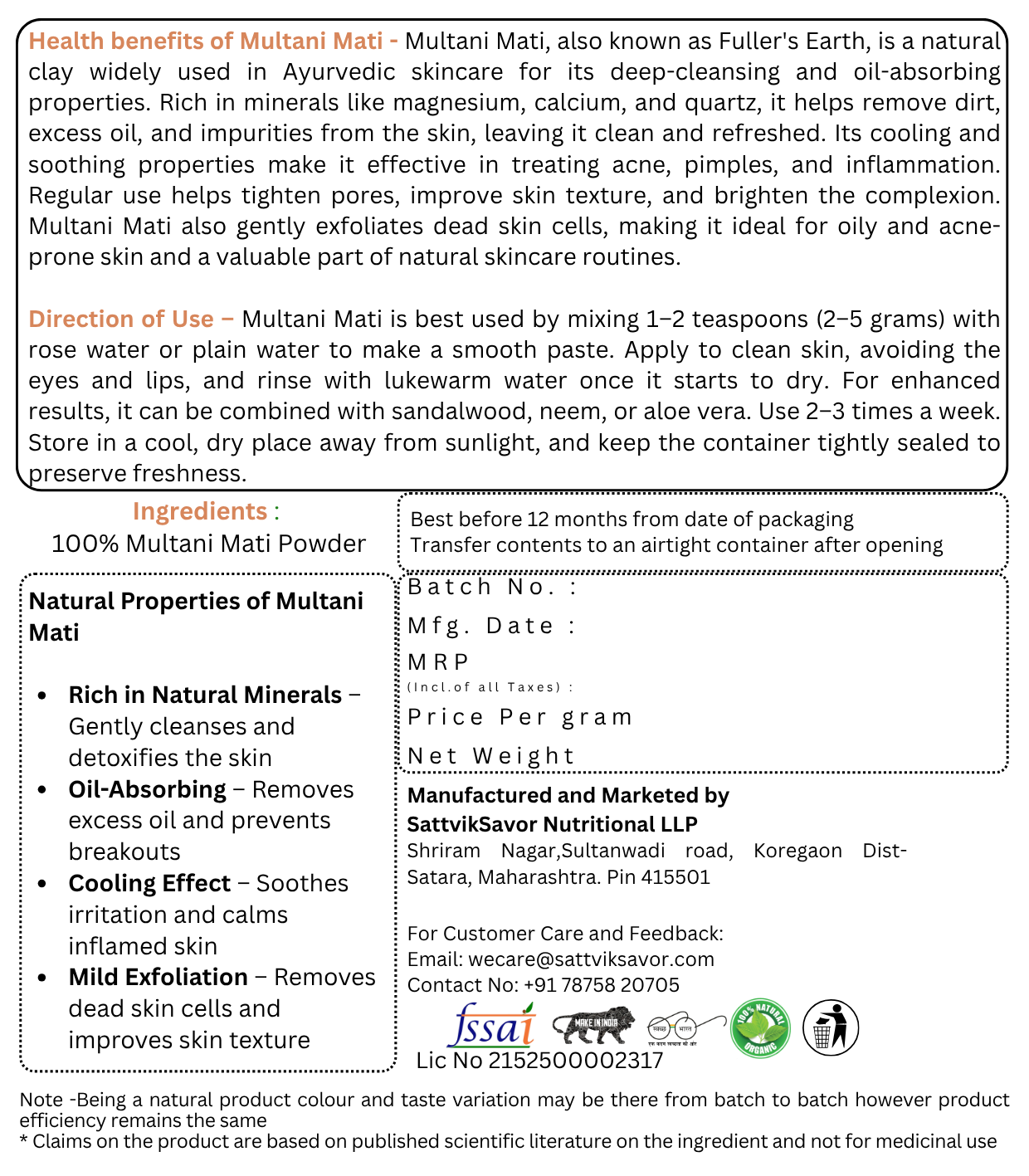 Uses of Multani Mitti: